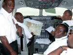 When it was finally time to depart, they brought 17 folks to ride home on the plane. Given the heightened security of these times, it took some doing to get this all approved (since the plane was traveling on a ferry permit, to boot). Checking them all in and getting things going took longer than expected (remember, this was running on African time!), and they finally got out of the chocks three hours late. They had wanted to do a post-maintenance test flight, but this was refused by the FAA, and it was made abundantly clear to them that the only way they would be allowed to land back at MHV (or anywhere else short of their initial destination in Baltimore) was if something were seriously broke. When I spoke to the Captain about this, he chuckled in his James Earl Jones-like baritone voice and said, "If the green lights go out, we go."